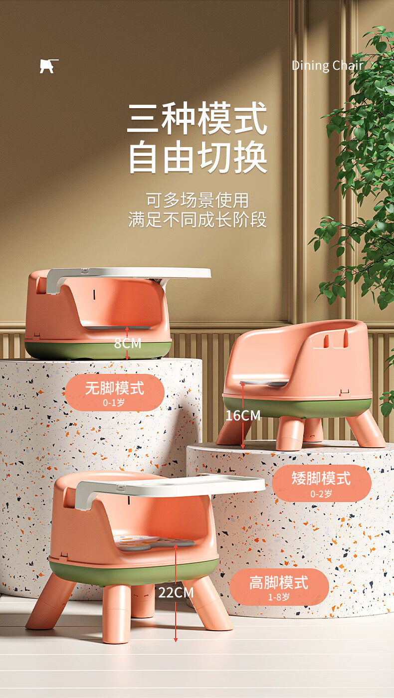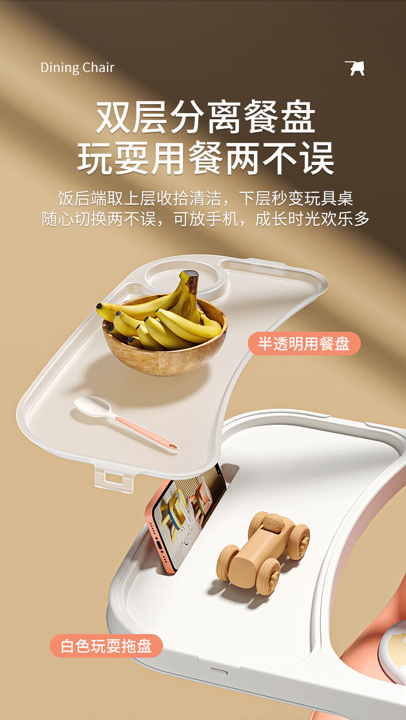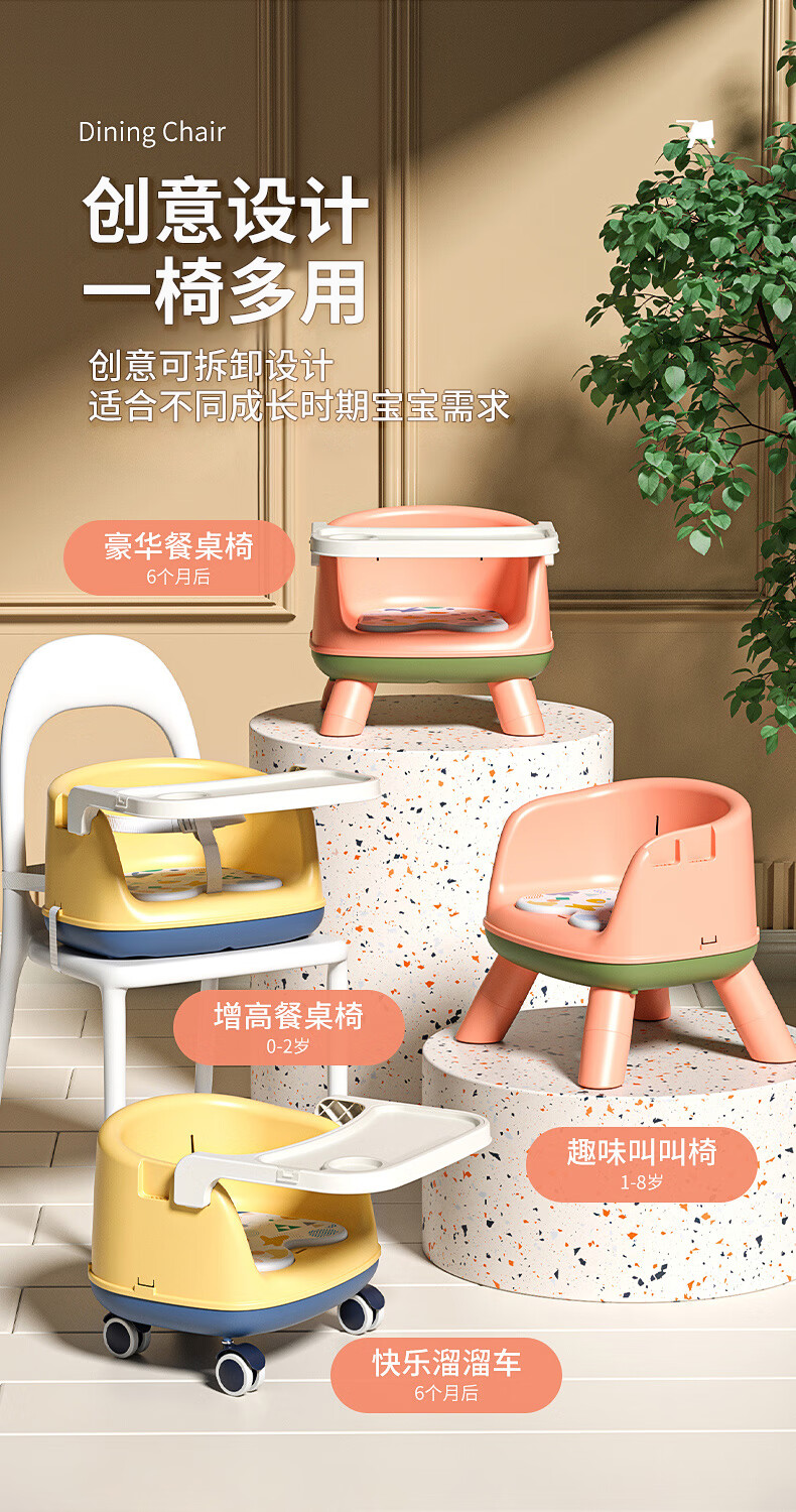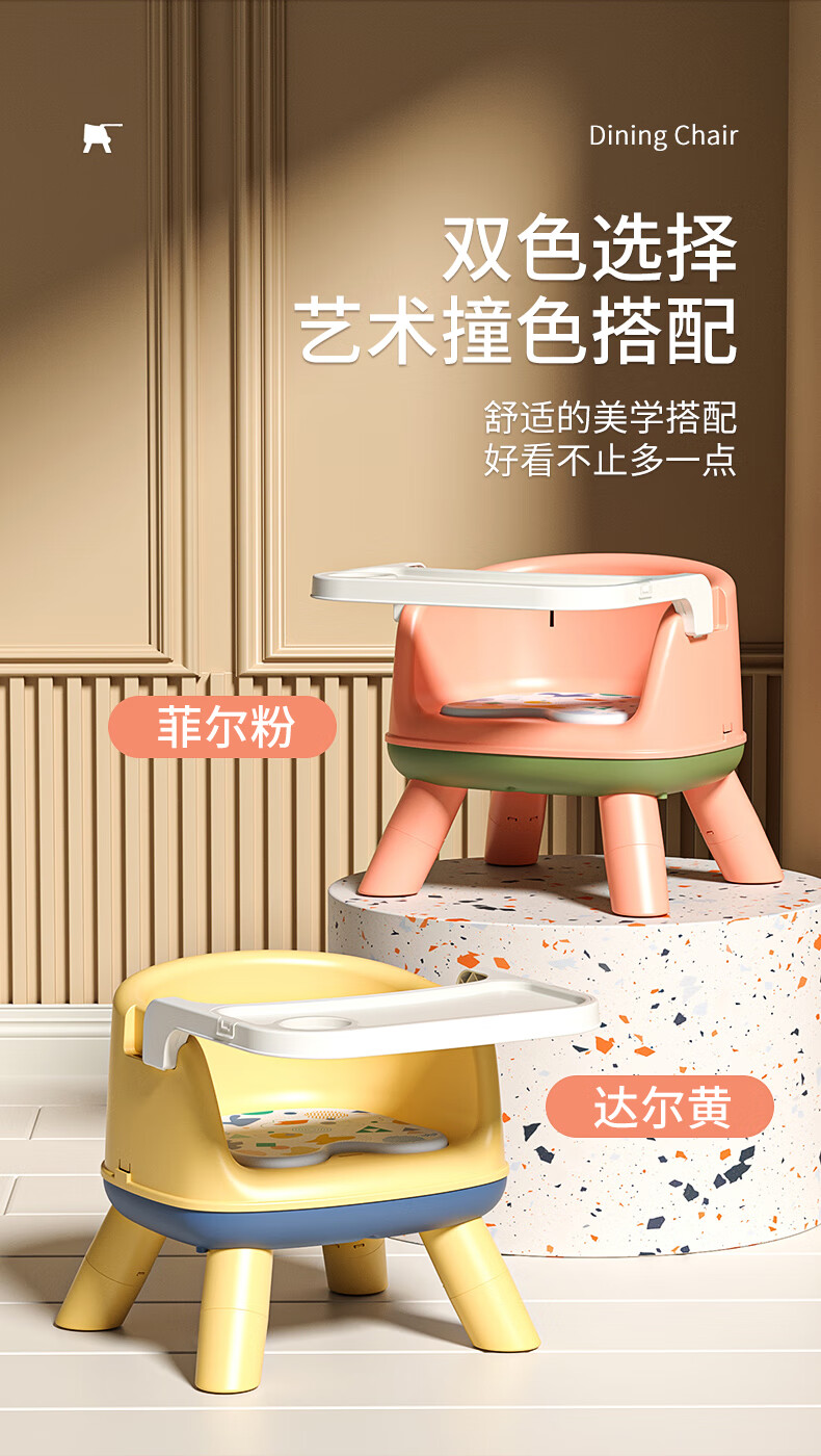 Howawa Baby High Chair Children High Chair with Tray Baby Chair Stool Backrest Chair Dining Home Call Chair Chair Chair Chair Phil Powder PVC Soundmaking Soft Cushion+Dining Plate+High Feet [Image Price Brand Quotation