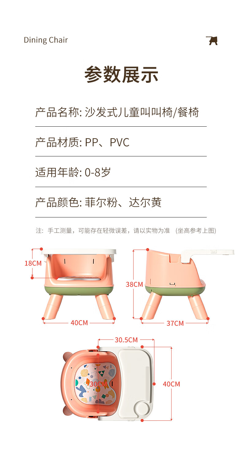 Hawawa Baby High Chair Children High Chair with Tray Baby Chair Stool Backrest Chair Dining Home Called Chair Chair Chair Chair Phil Powder PVC Soundmaking Cushion+Dining Plate+High Feet