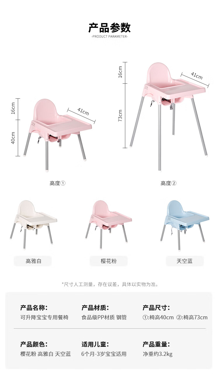 Fei Wan Baby's Baby Highchair Eating High Chair for Infants and Young Children Easy Portable Dining Table Household BBB Stool Multifunctional Learning Seat Pink Baby Highchair No Meal Board (Fixed Version) [Image Price Brand Quotation]-
