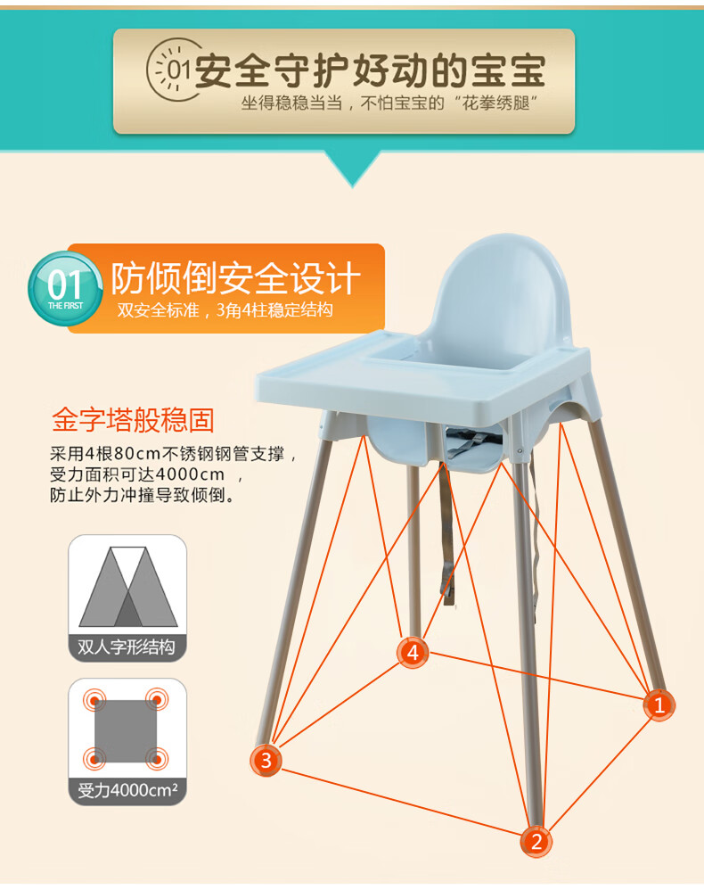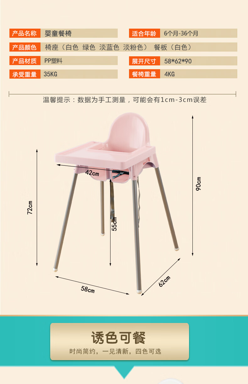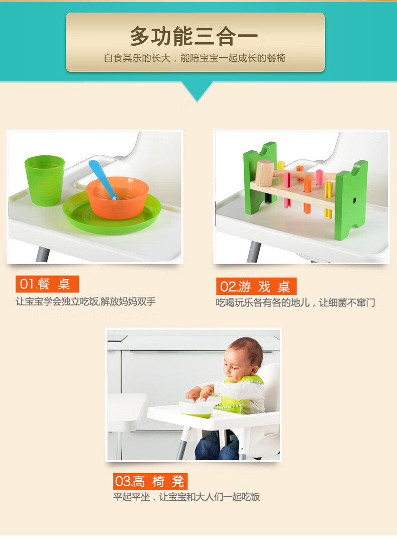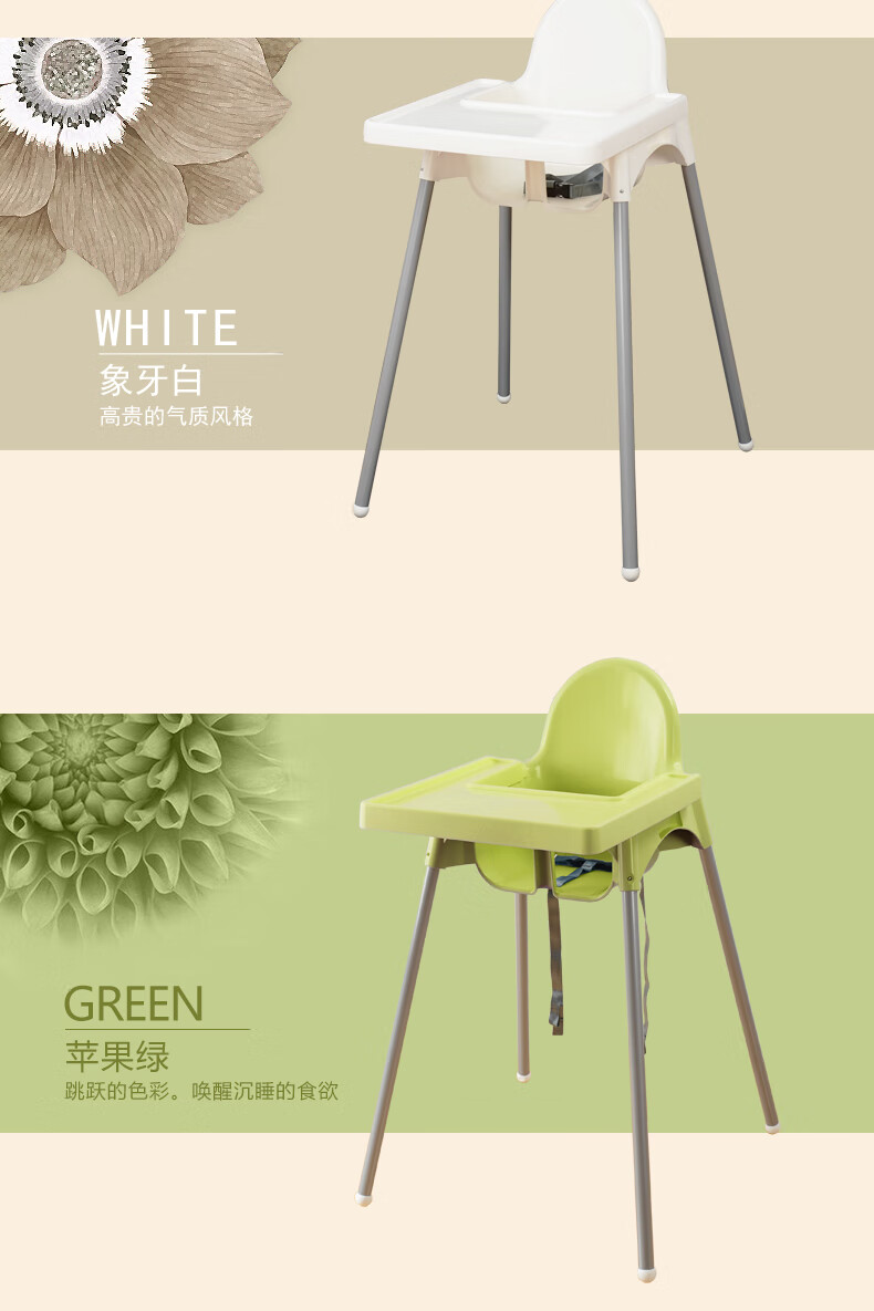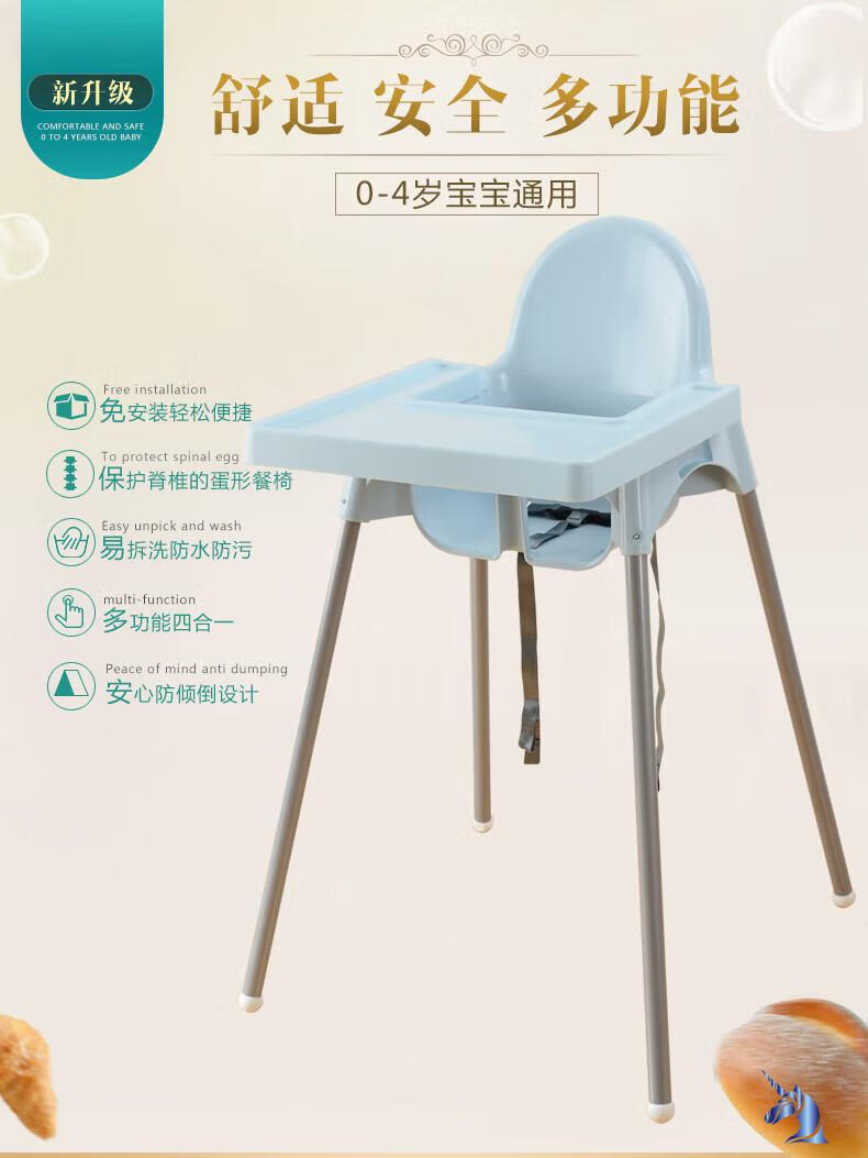 Hagaday Children's Baby Highchair High Chair Baby Dining Chair Baby Chair Safety Chair Thickened Dining Children's Baby Highchair White Baby Highchair+Dining Board (purchased by the mall) [Image Price Brand Quotation]-