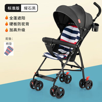 Fei Wan Children's Baby Stroller can sit, lie down, and be lightweight, portable, and easy to use. Super small children's baby sitting umbrella car with full roof upgrade, black, can only sit and prevent hunchback. [Image price: Brand quotation]-