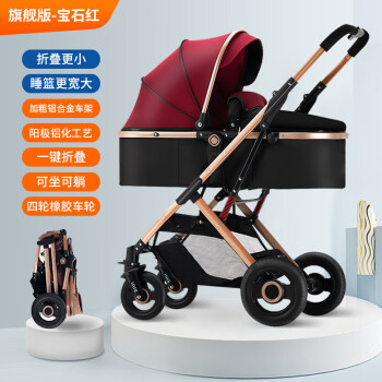 Fei Wan 2023 Baby Stroller, 0-3 years old, portable, able to sit, lie down, and turn to baby and children's four-wheel stroller, flagship version, Lotus Pink - four-wheel rubber stroller
