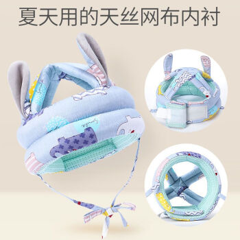 Bubble Tiger Baby Proof Baby Pillow Toddler Head Protection Pillow Toddler Head Protection Pad for Children Learning to Walk Rabbit Ears Pure Sky Silk Breathable Blue (recommended for summer)