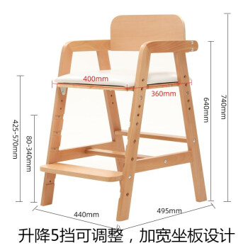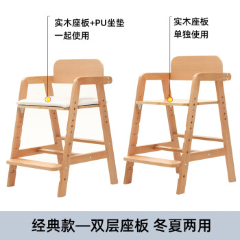 Liu Chaobu Baby Highchair, Large Baby Adjustable Baby Highchair, High Foot Dining Bench, Higher Growth Learning Chair, Natural Wood Frame, White Seat Surface [Image Price Brand Quotation]-