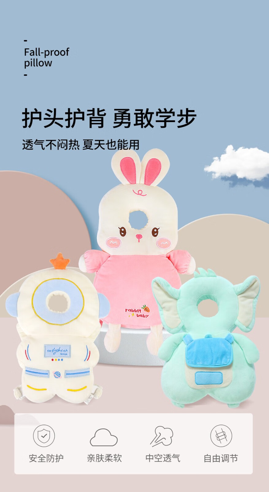 Mom, Baby, Anti Drop Pillow, Head Protection Divine Tool for Learning to Walk Toddler Head Protection Pillow, Infant and Toddler Head Protection Cushion, Anti Collision Head [Grid], Pink Sprite, and Free Horizontal Fixing Band [Image Price Brand Quot...