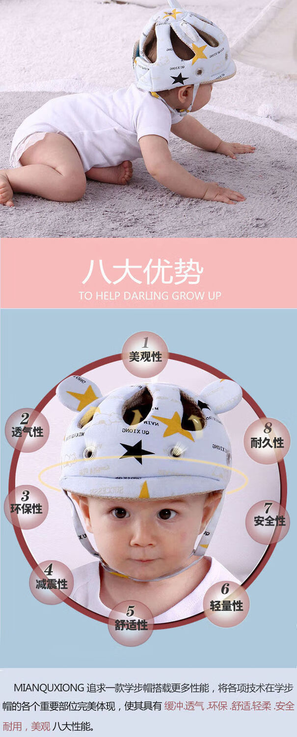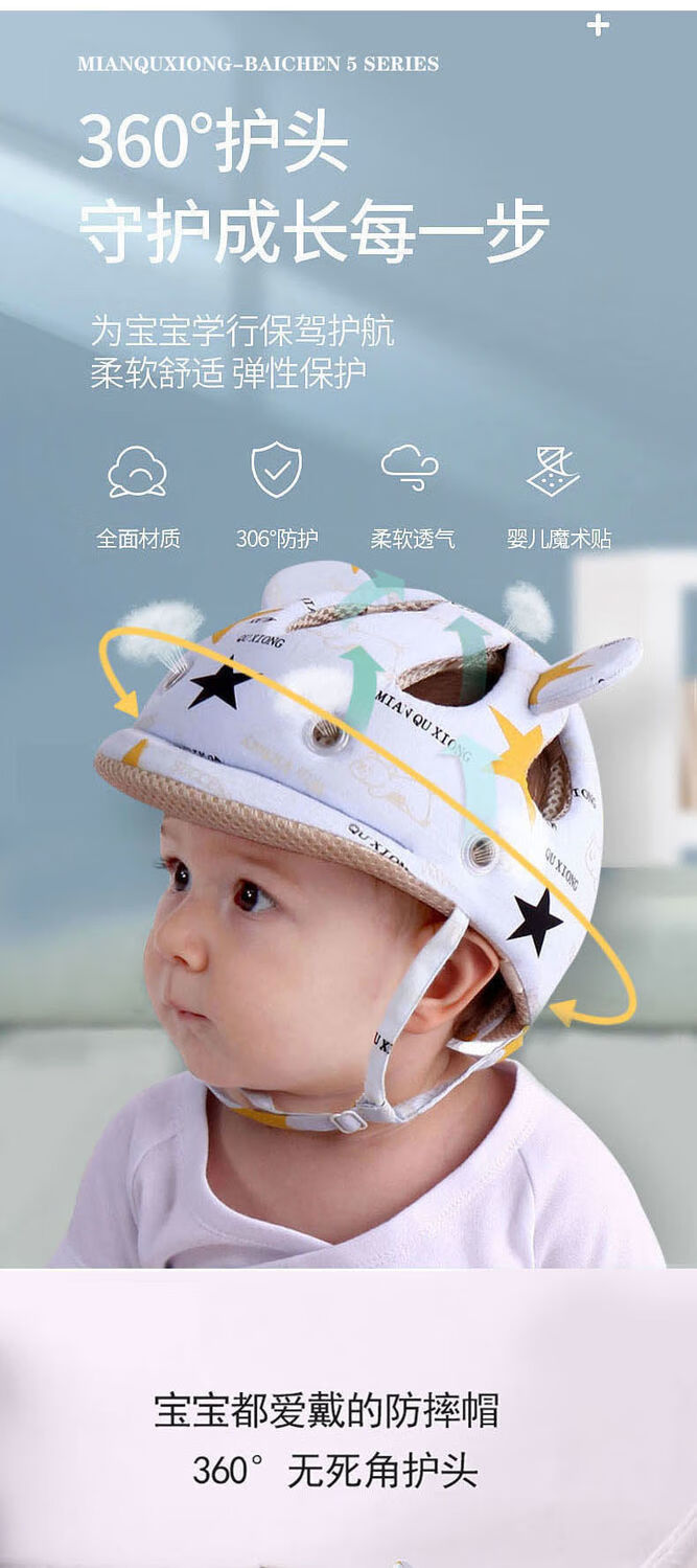 Baby Proof Baby Head Protector Baby Head Protector Children's Helmet Crash Cap Locke Blue - Horn Style Default [Image Price Brand Quotation]-