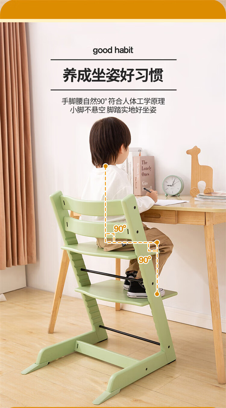 Pakey Baby Highchair Children's Growth Chair China Edition Imported Solid Wood Multifunctional Infant High Chair Dining Chair Adjustable 【 Environmentally Friendly Water Paint Imported Solid Wood 】 Natural Wood Color