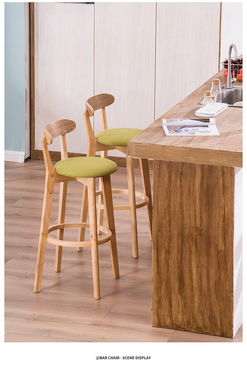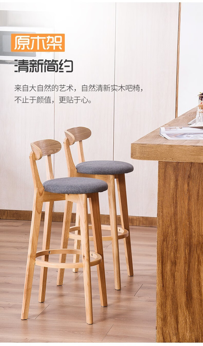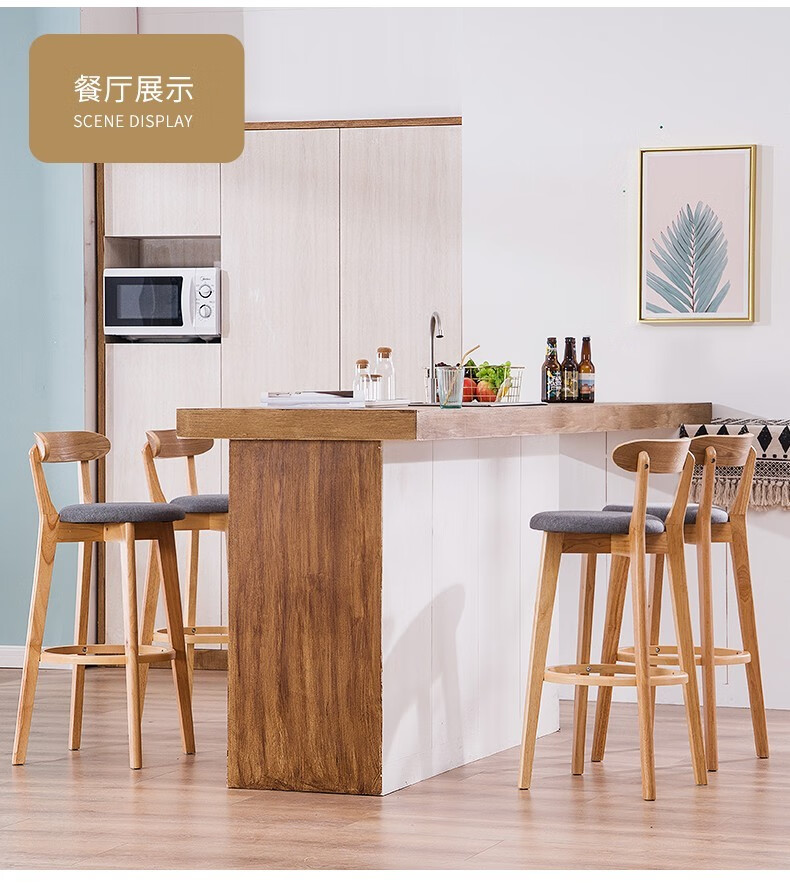 Nanhuang bar chair, high stool, high backrest bar stool, Nordic solid wood front desk bar stool, cash register bar chair, household light luxury bar chair, solid wood cushion
