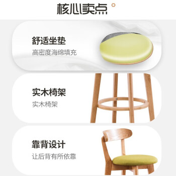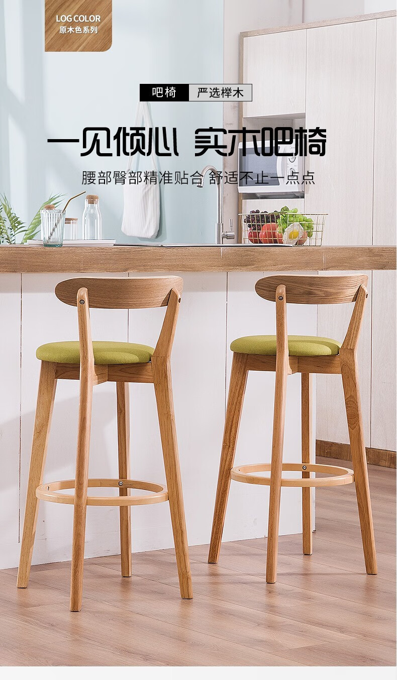 [Nanhuang M802] Nanhuang bar chair, high footstool, high backrest bar stool, Nordic solid wood front desk bar stool, cash register, bar chair, household light luxury bar chair, solid wood cushion [Market quotation and price evaluation]-