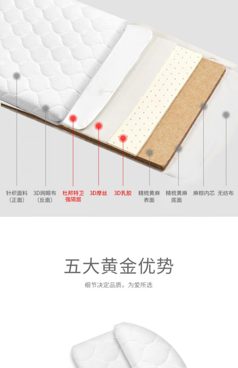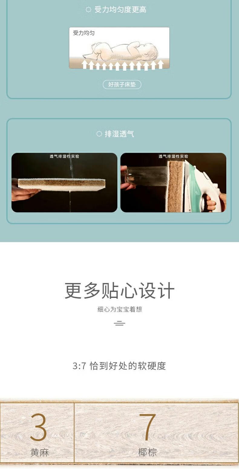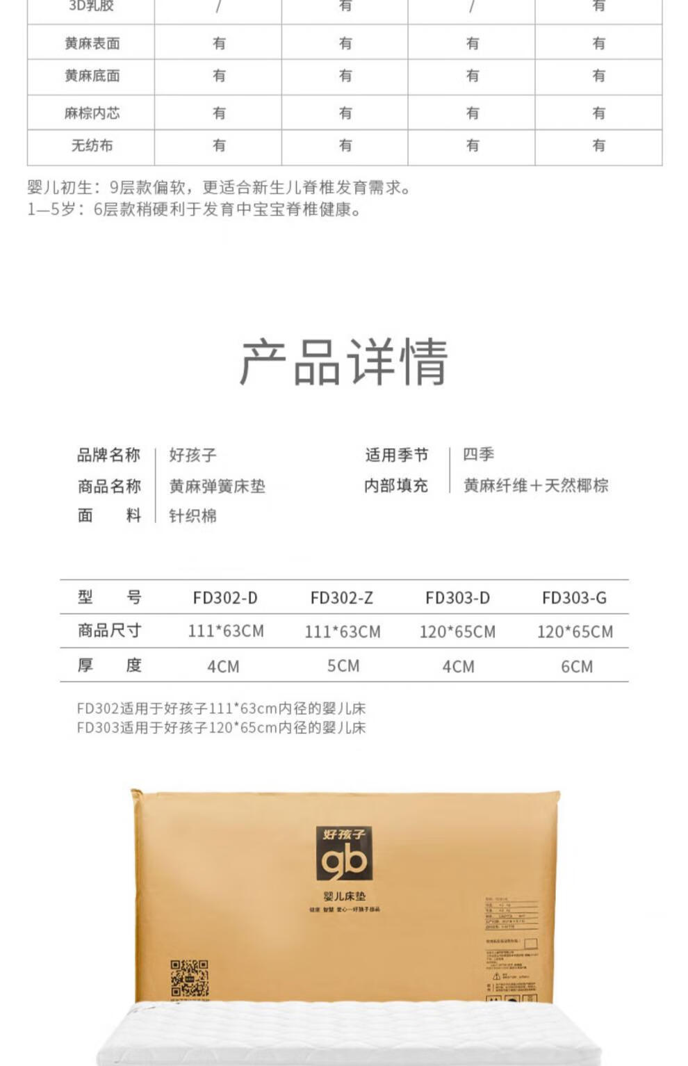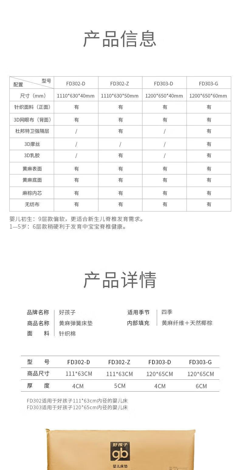 Good child (gb) baby crib mattress natural coconut brown jute fiber mattress mousse breathable natural latex mattress FD303D thickness 4cm 111 * 63 [Image price brand quotation]-
